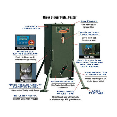 Texas Hunter 175 lbs Fish Feeder with Adjustable Legs The Texas Hunter 175 lbs Fish Feeder is a powerful, reliable solution for feeding your fish i...